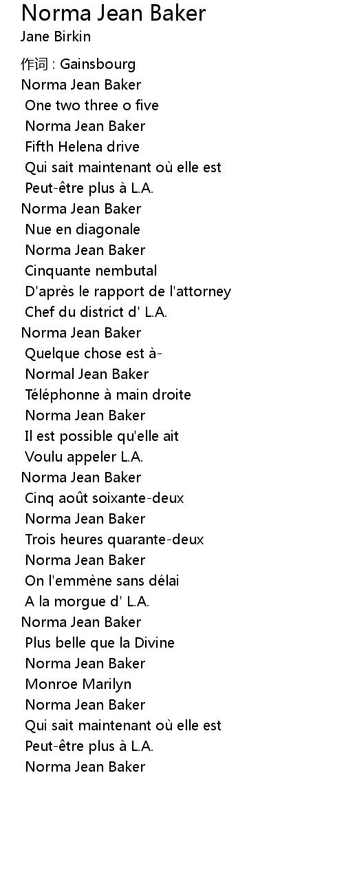 | Song | Norma Jean Baker |