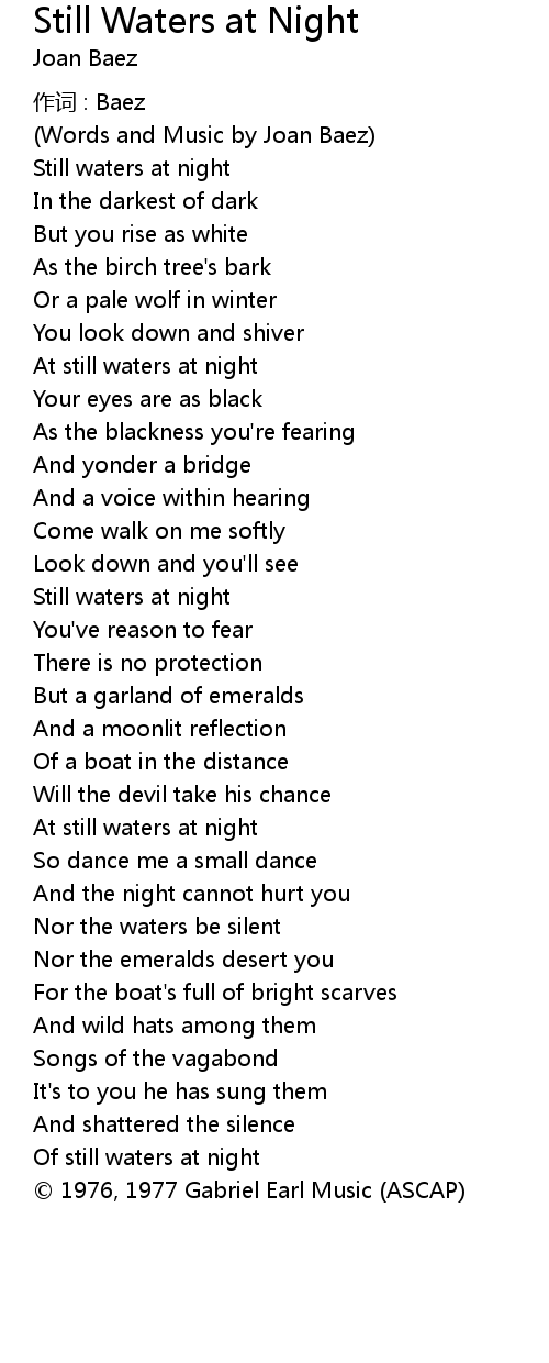 | Song | Still Waters at Night |