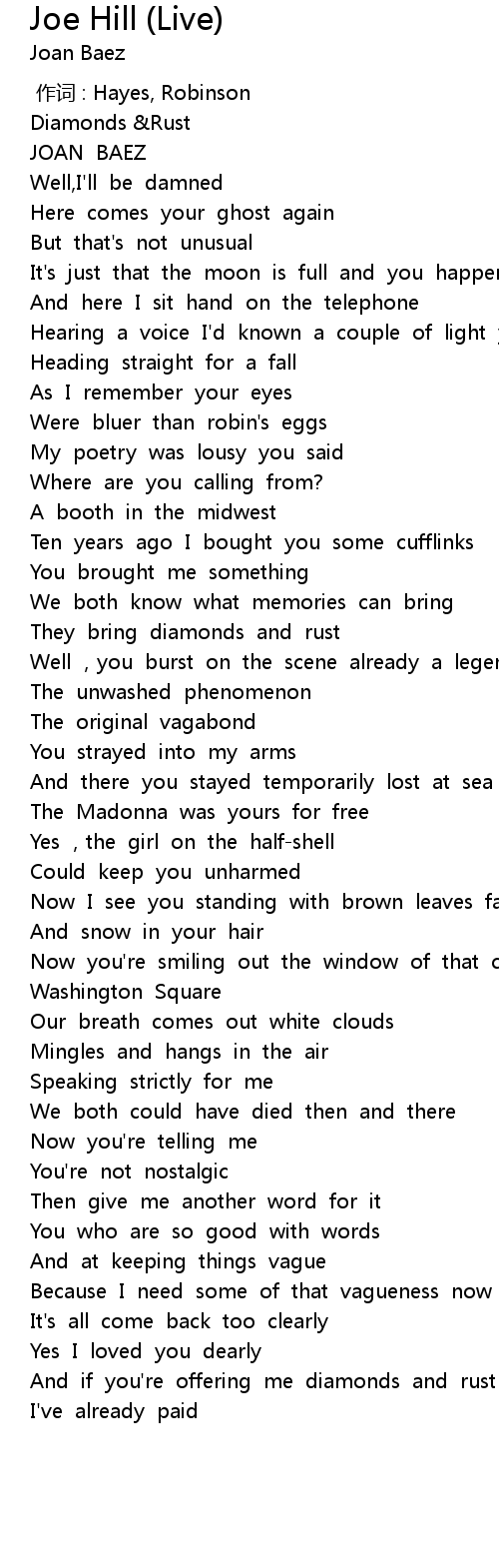 | [03:55.154] | And if you' re offering me diamonds and rust |