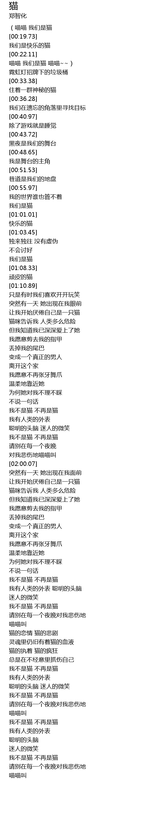 | [02:44.99] | wǒ bú shì māo bù zài shì māo |