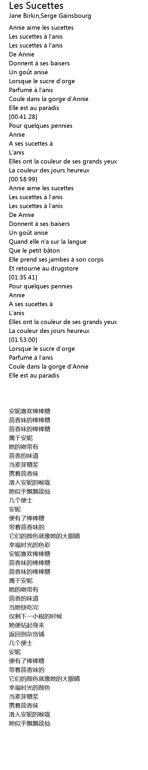 | [01:01.89] | Annie aime les sucettes |