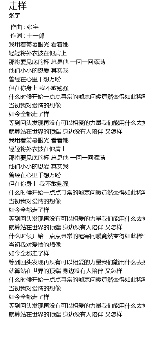| [00:00.00] | 作曲 : 张宇 |