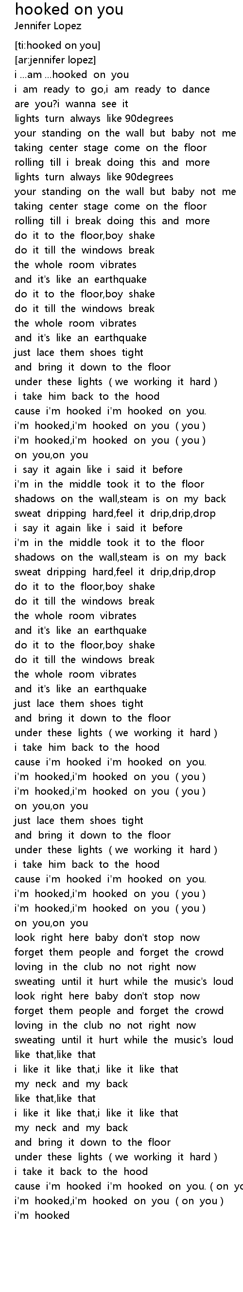 | [01:50.34] | i' m hooked, i' m hooked on you you |