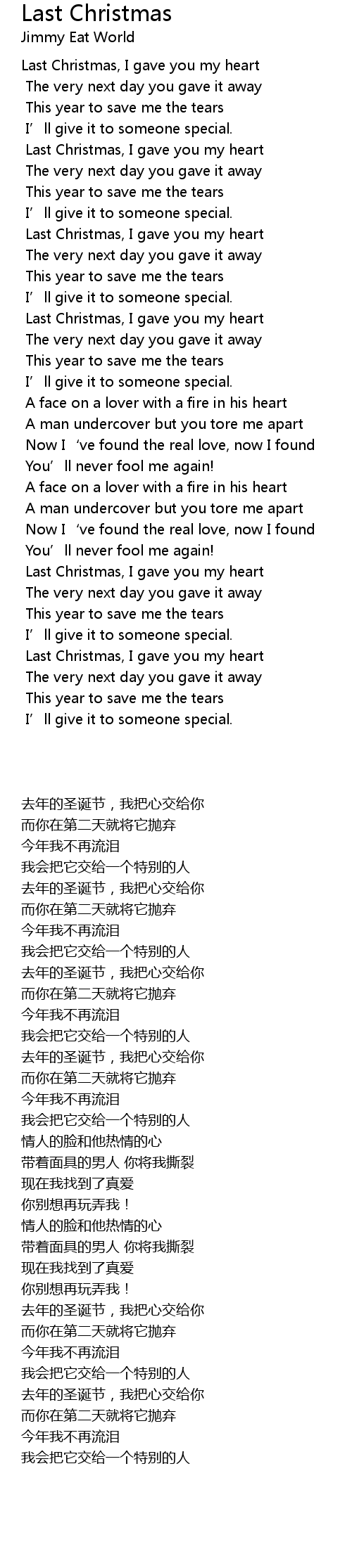 | [00:32.38] | Last Christmas, I gave you my heart |