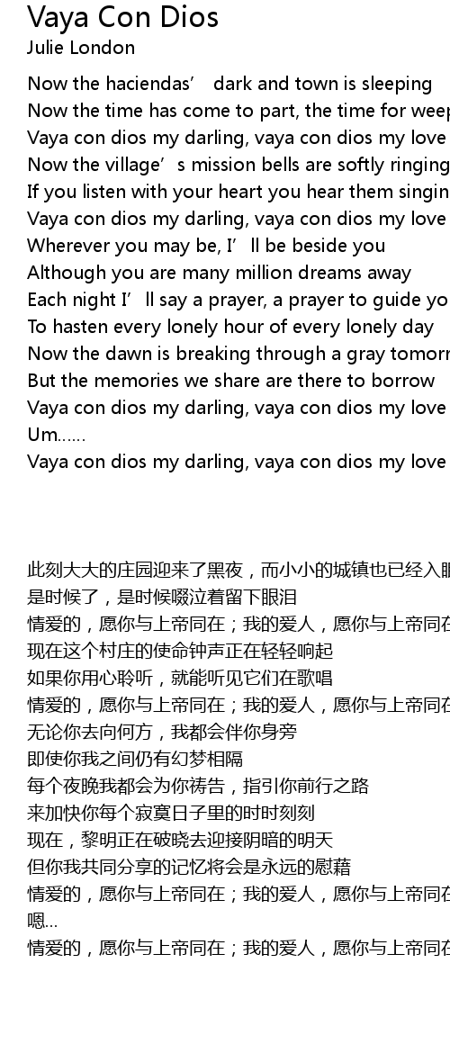 | [02:24.72] | Vaya con dios my darling, vaya con dios my love |