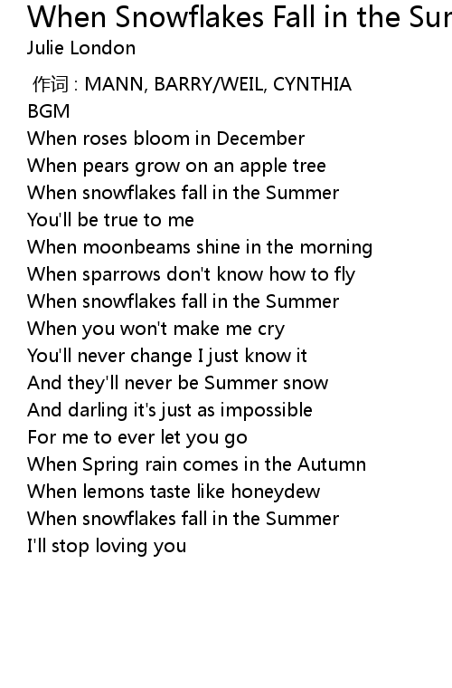 | [00:21.20] | When snowflakes fall in the Summer |