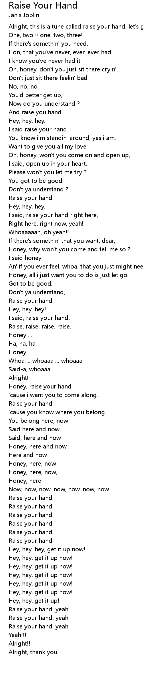 | Honey, raise your hand | |