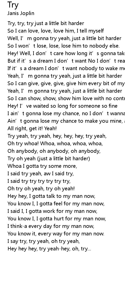 | [02:50.80] | Try oh yeah (just a little bit harder) |