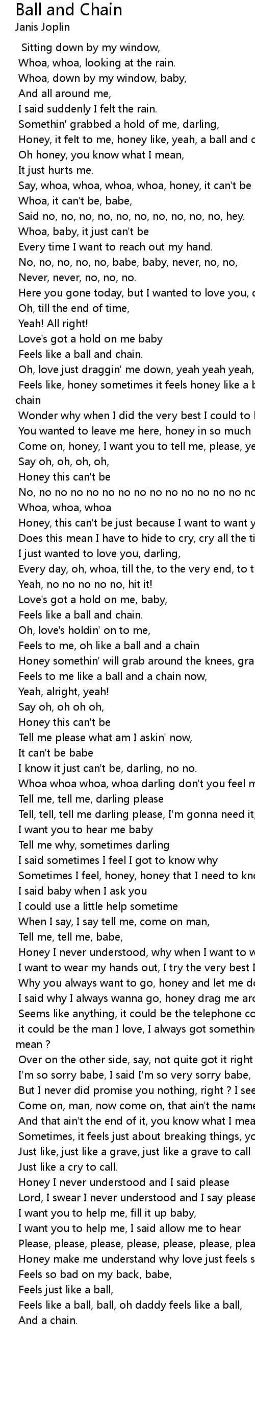 Feels like, honey sometimes it feels honey like a ball, yeah like a ball and a chain |