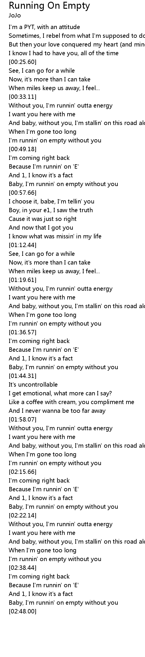 I'm runnin' on empty without you |