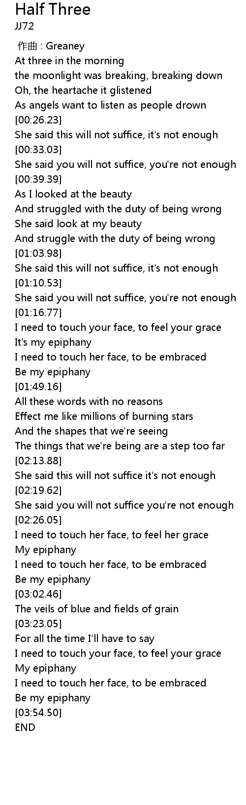 | [00:34.27] | She said you will not suffice, you're not enough |