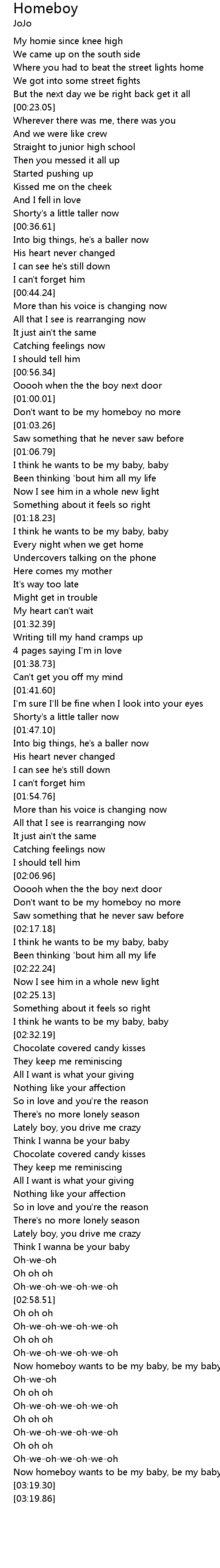 | [03:16.81] | Now homeboy wants to be my baby, be my baby, be my baby |