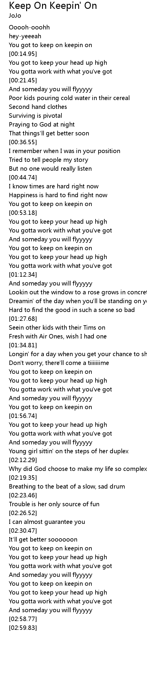 | [02:45.34] | You got to keep on keepin on |