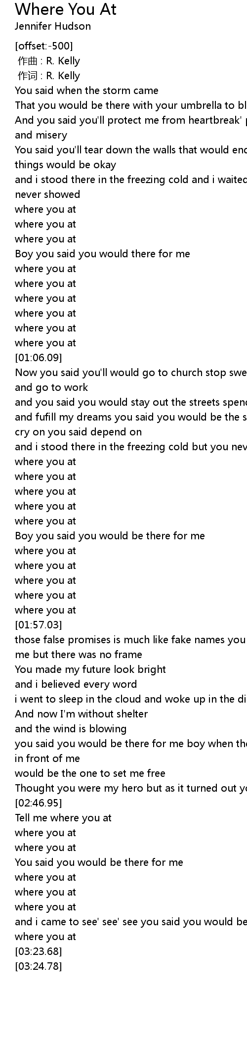 | [00:01.00] | zuo ci : R. Kelly |