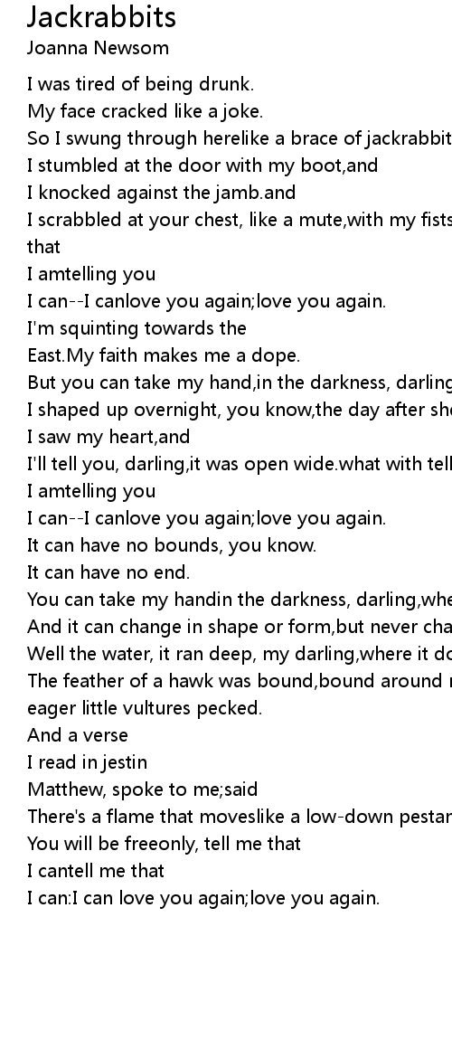 So I swung through herelike a brace of jackrabbits,with their necks all broke. |