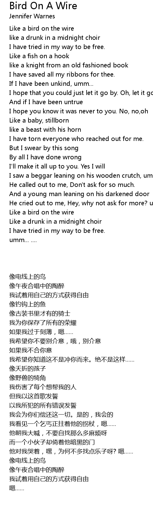 Like a bird on the wire |