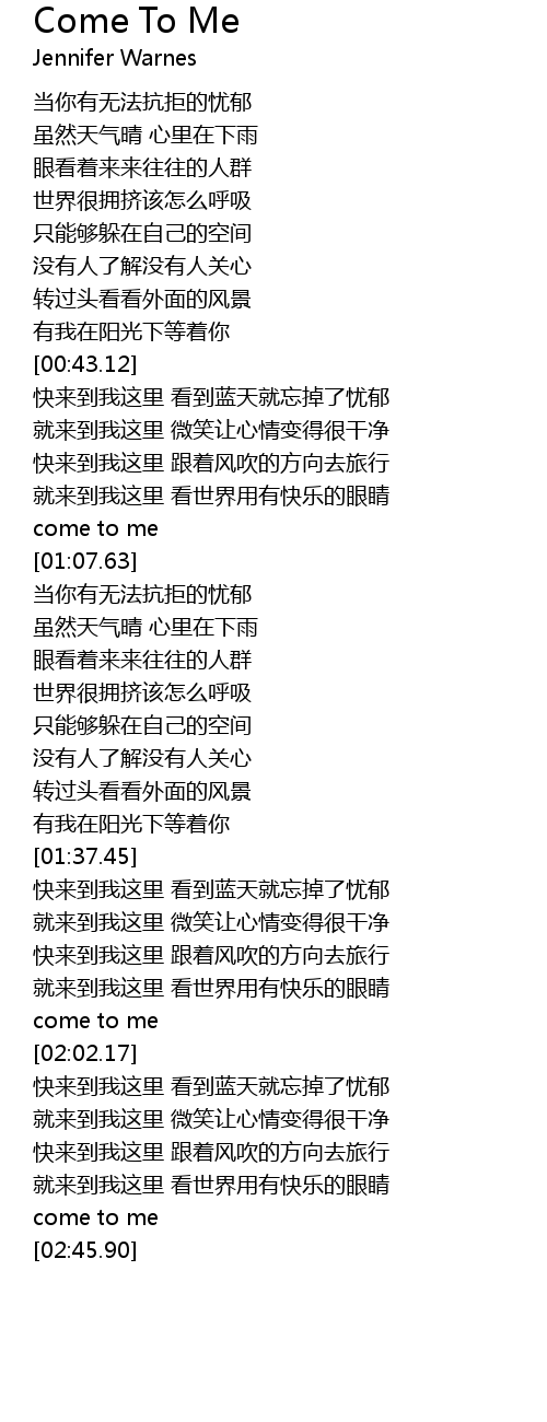 | [02:37.67] | 就来到我这里 看世界用有快乐的眼睛 |