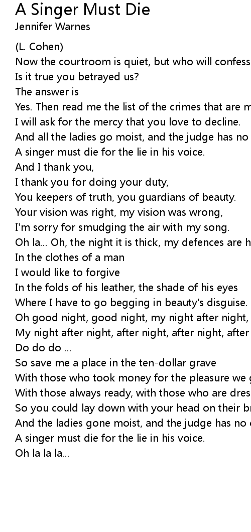 A singer must die for the lie in his voice. |