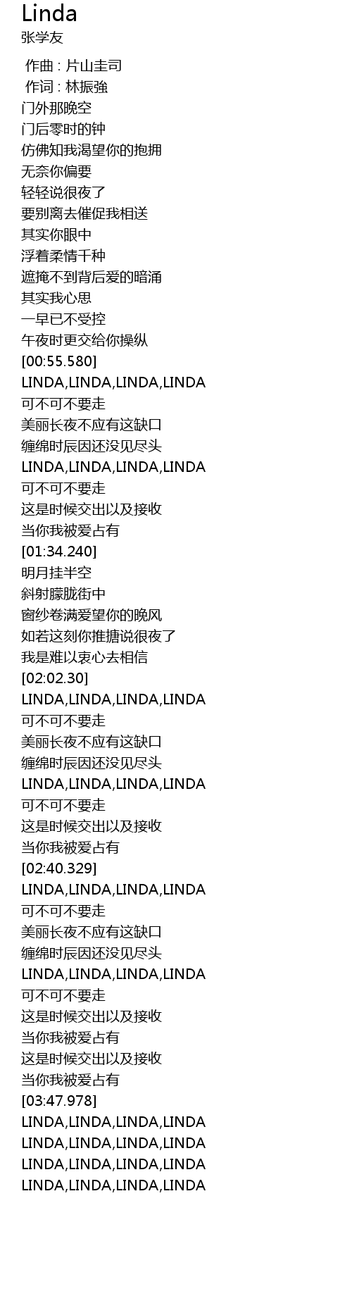 | [01:16.110] | LINDA,LINDA,LINDA,LINDA |