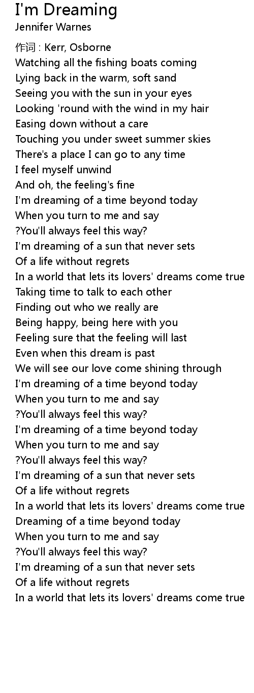 | Song | I'm Dreaming |