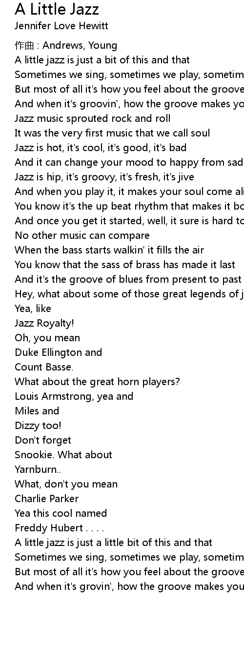 | Jazz is hip, it's groovy, it's fresh, it's jive | |