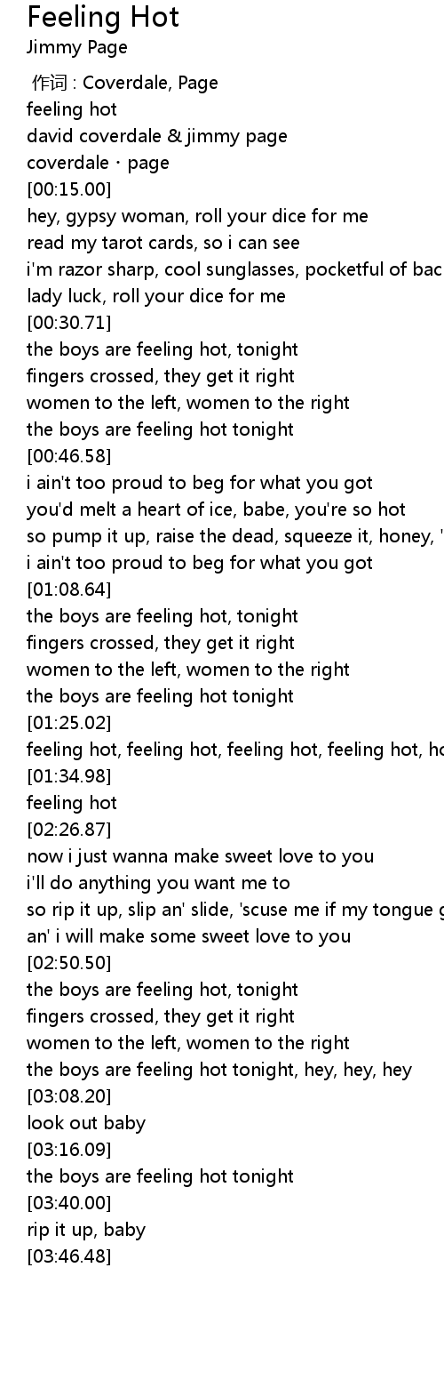 | [01:26.40] | feeling hot, feeling hot, feeling hot, feeling hot, hot, hot, hot |