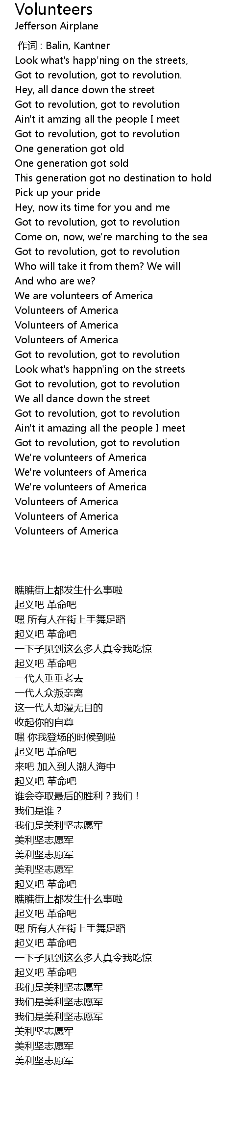 | [01:30.45] | We're volunteers of America |