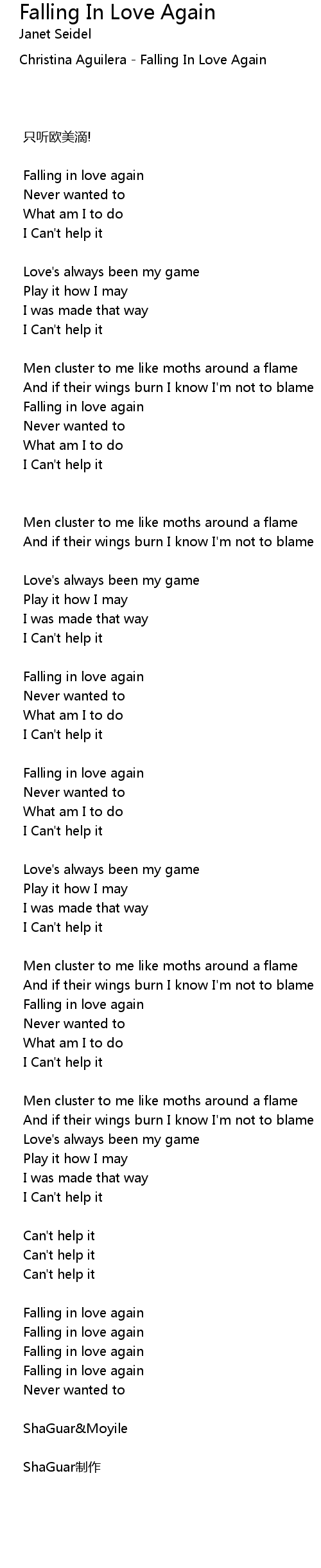 | Christina Aguilera Falling In Love Again | |
