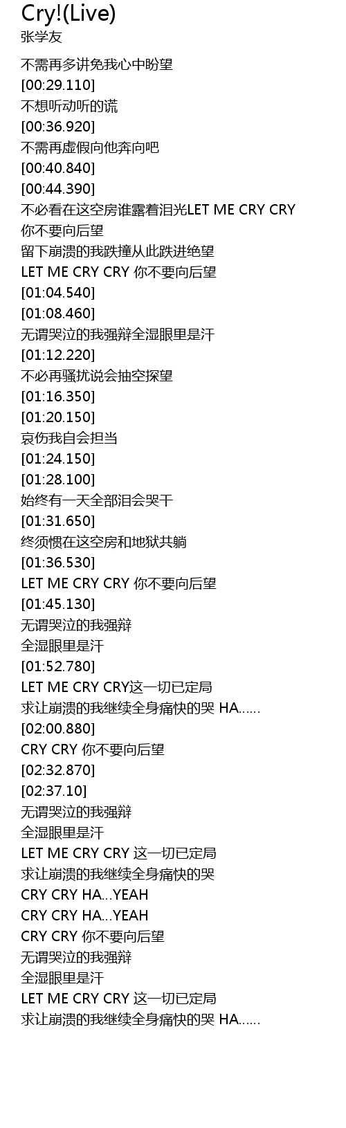| [01:53.250] | LET ME CRY CRY这一切已定局 |