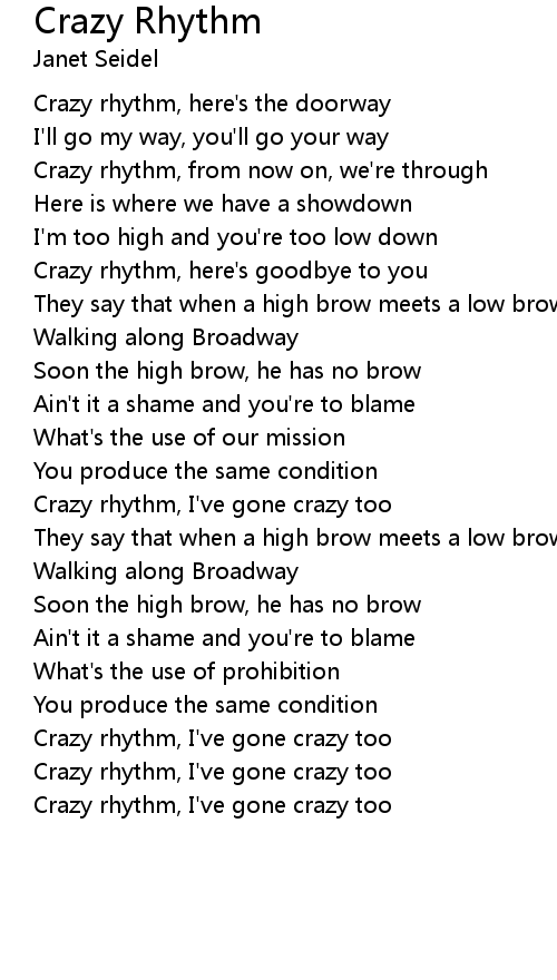 Crazy rhythm, I've gone crazy too |