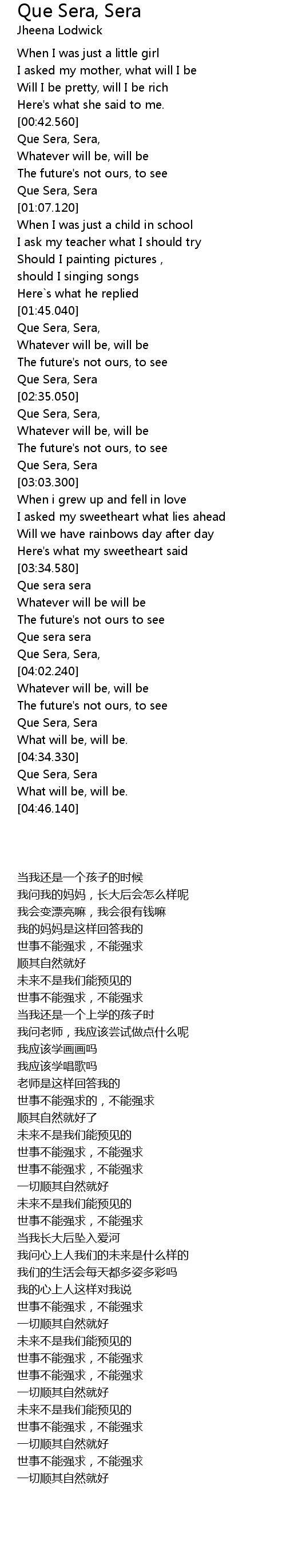 Que Sera, Sera, |
