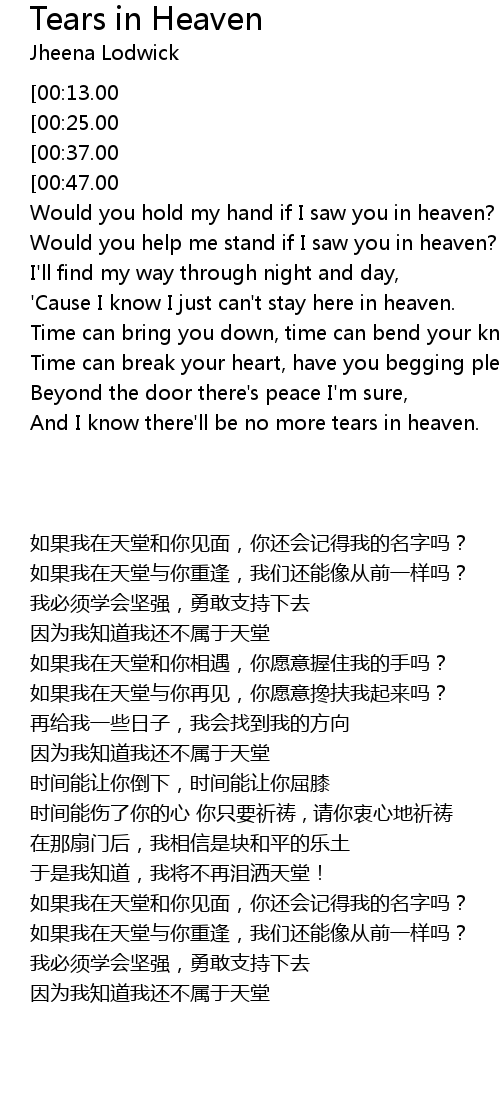And I know there'll be no more tears in heaven. |
