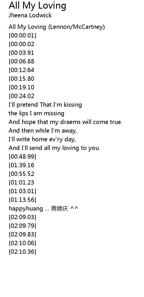 | [00:00.00] | All My Loving (Lennon/McCartney) |