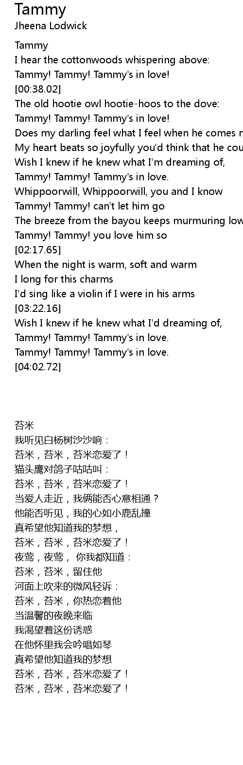 Tammy! Tammy! you love him so |