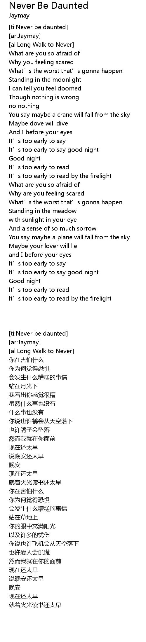 | [00:25.53] | You say maybe a crane will fall from the sky |