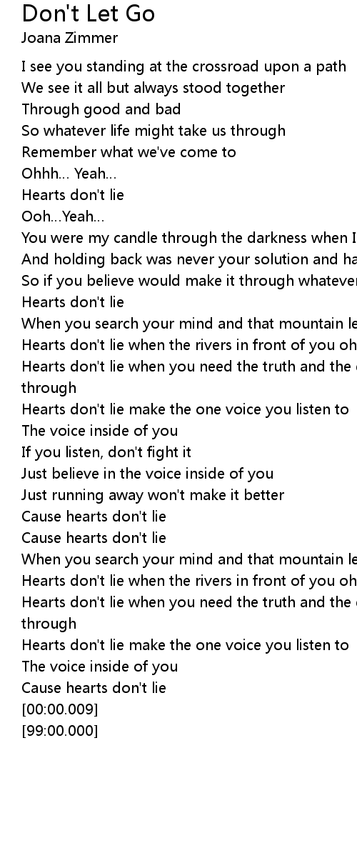 | [03:13.91] | Hearts don't lie make the one voice you listen to |