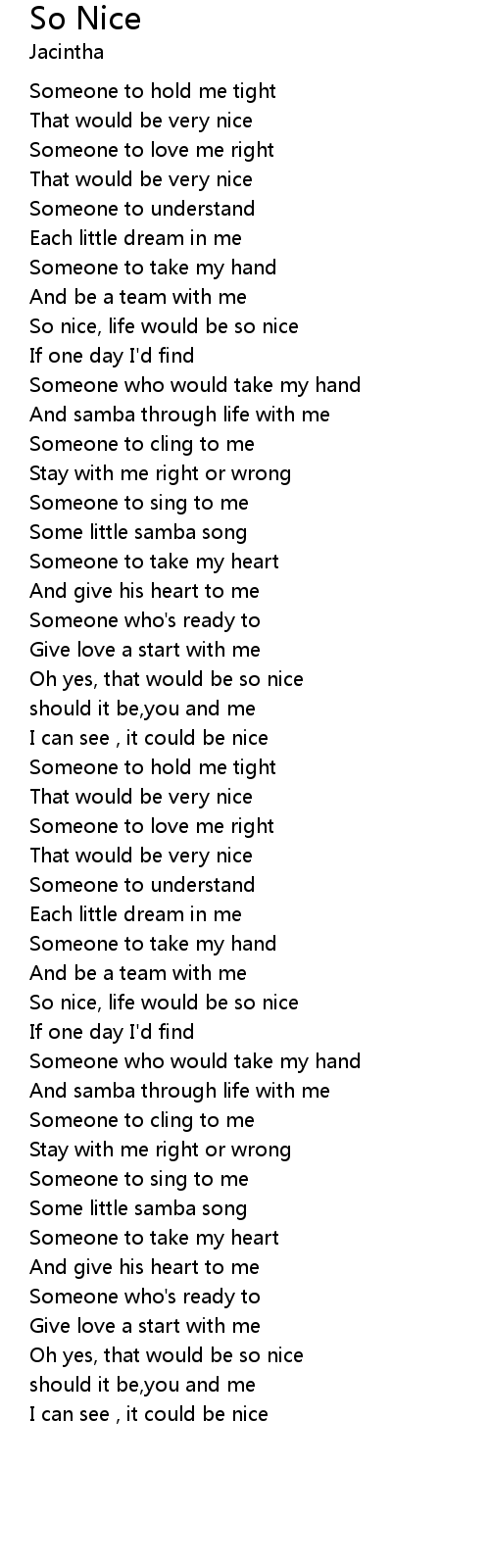 So nice, life would be so nice |