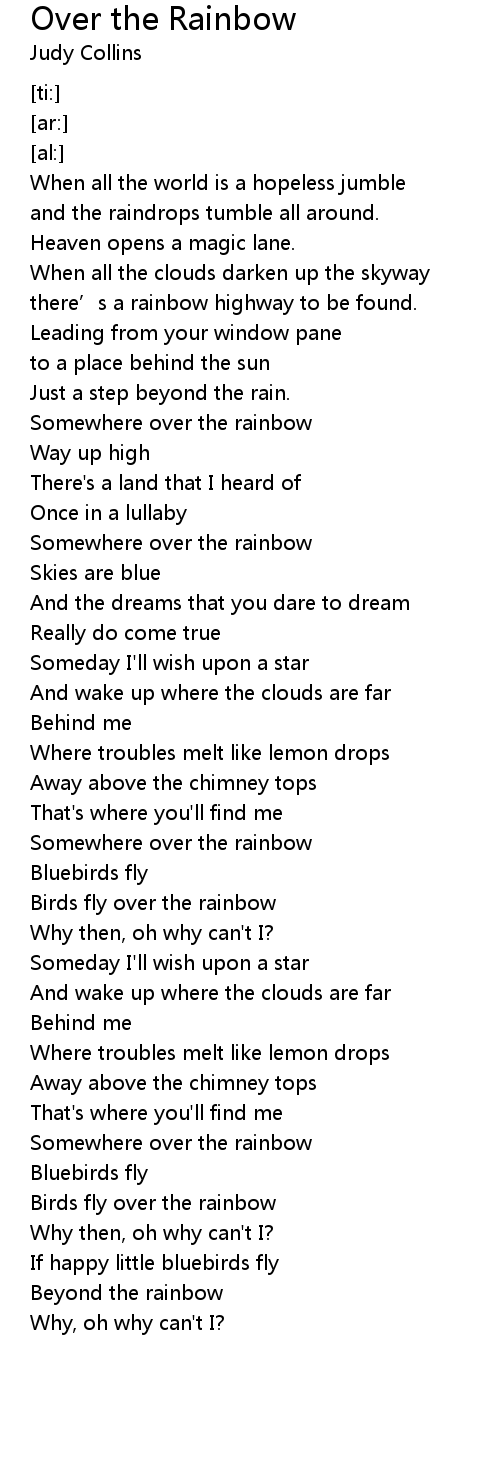 | [01:09.71] | Somewhere over the rainbow |