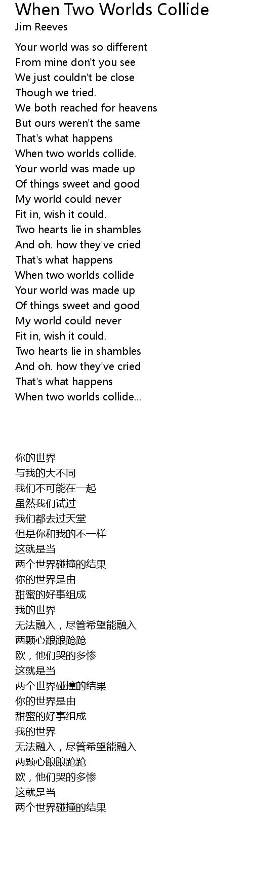 My world could never |