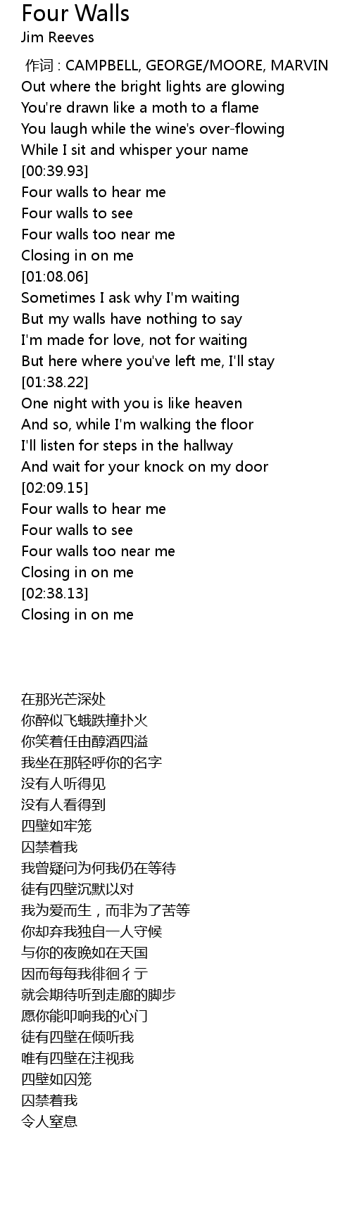 | [01:54.69] | I' ll listen for steps in the hallway |