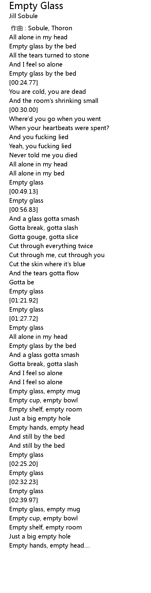 | [01:25.73] | Empty glass |