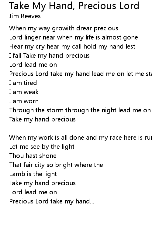 Precious Lord take my hand lead me on let me stand |