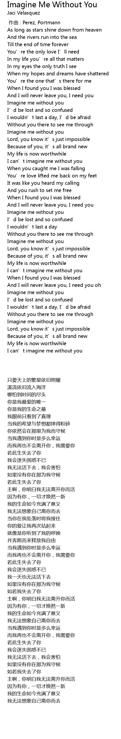 | [01:33.829] | I can' t imagine me without you |