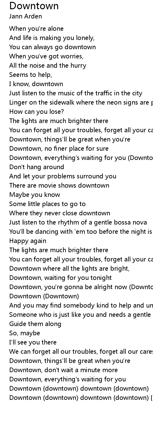 Downtown (downtown) downtown (downtown) [repeat and fade out]
