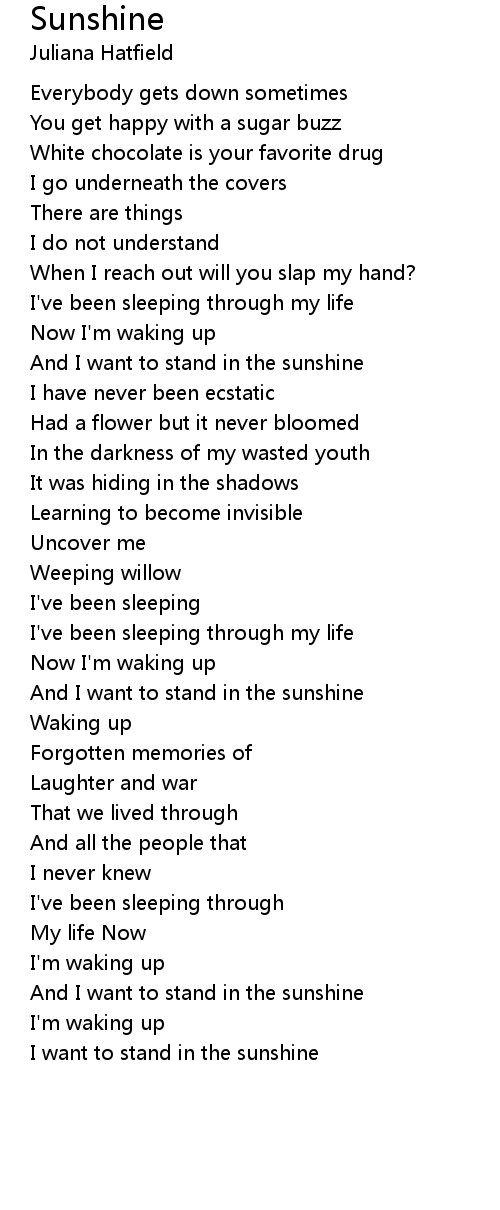 And I want to stand in the sunshine |