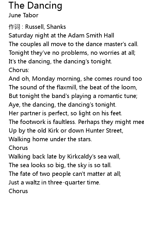 | Aye, the dancing, the dancing' s tonight. | |