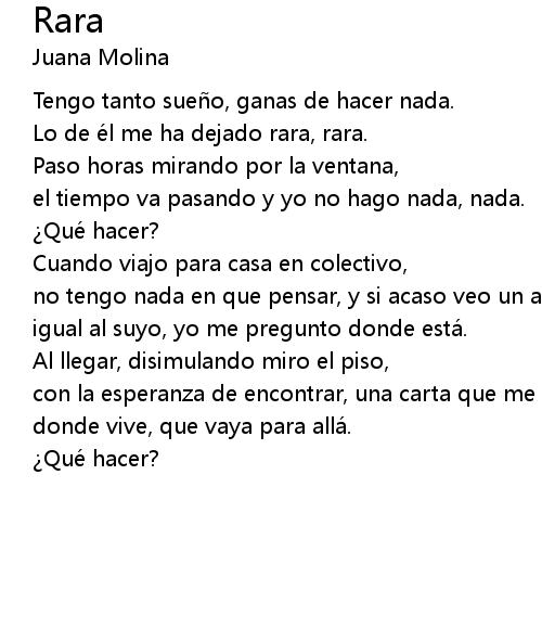 | Lo de é l me ha dejado rara, rara. | |