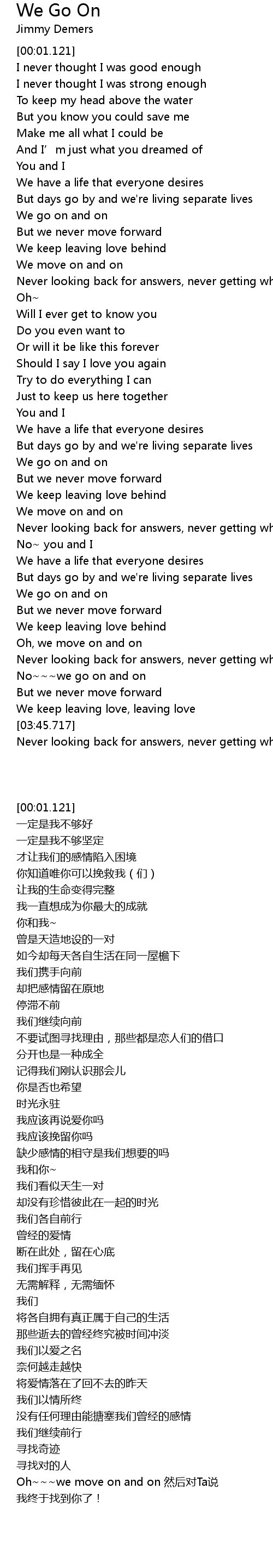| [03:30.522] | No we go on and on |