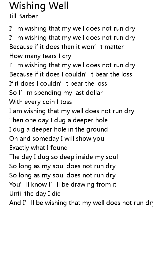 | And I’ll be wishing that my well does not run dry |