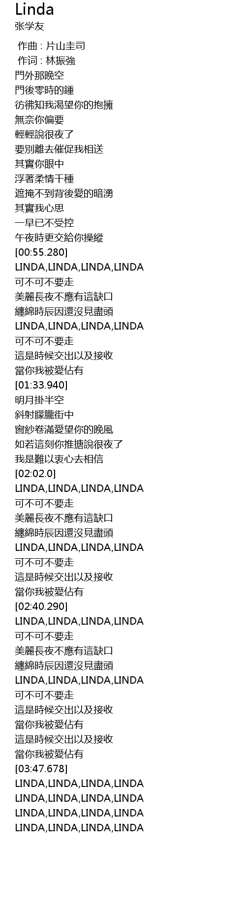 | [00:57.400] | LINDA,LINDA,LINDA,LINDA |